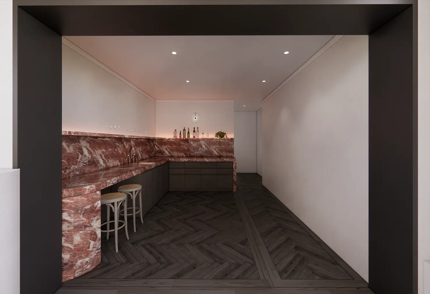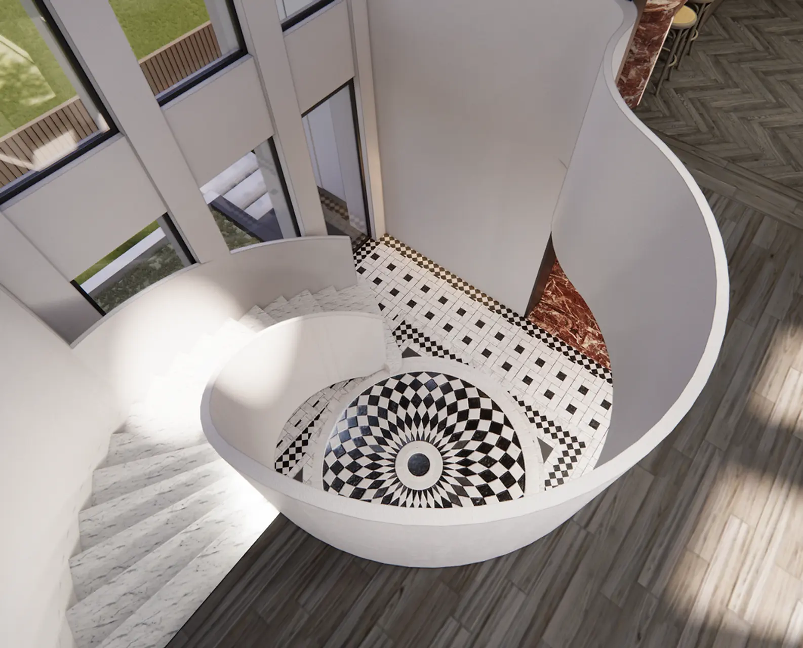 The design presents a striking blend of modern architectural elegance while paying homage to the Art Deco roots of the original structure by revitalising the decoration details and applying classic tile flooring, while simplified Art Deco architectural language is introduced in the new extension with pure and sculptural forms.