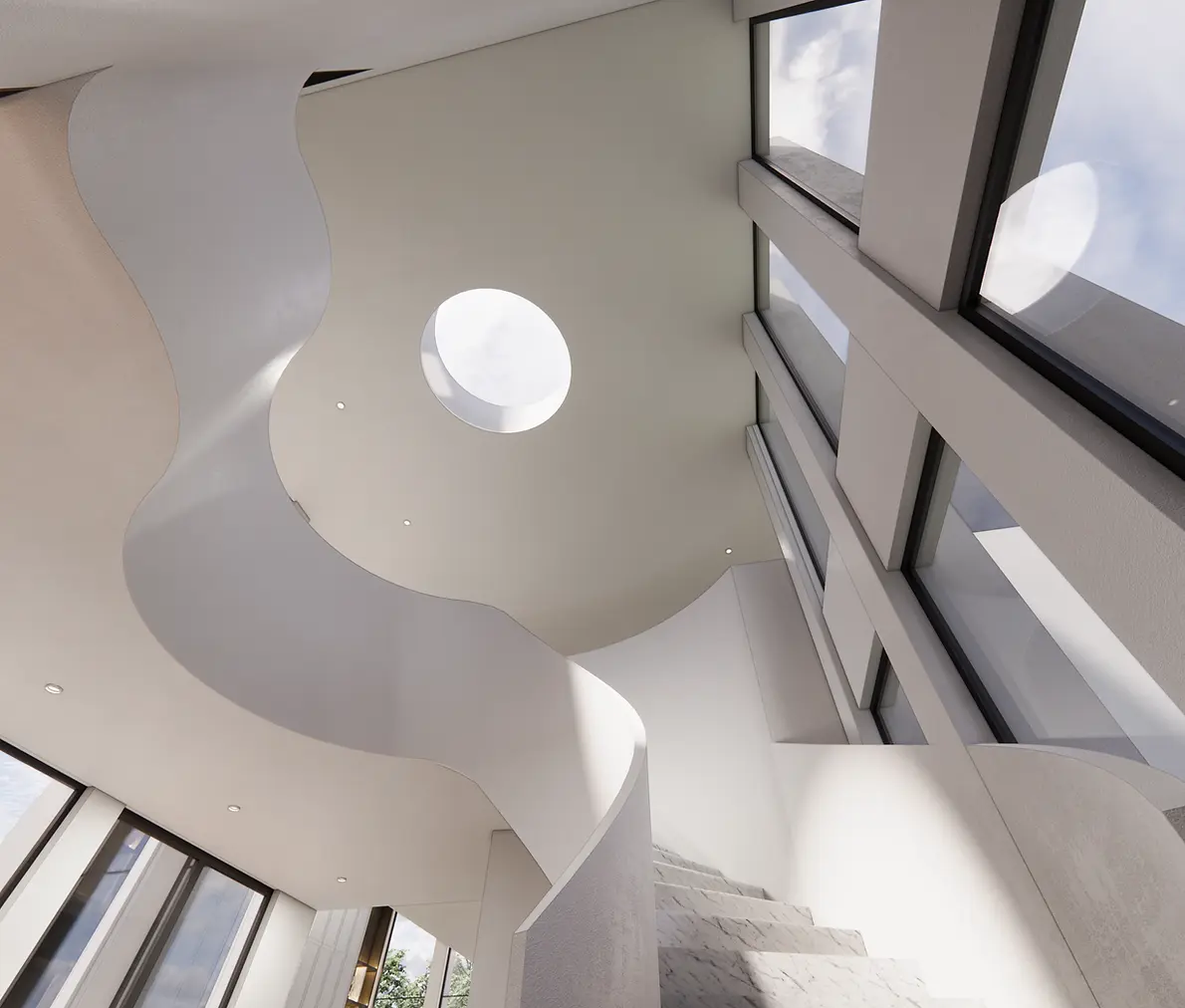 A transition void has been introduced to gracefully separate the old and new, where the curved staircase along with the circular skylight introduces a grand experience as well as a dynamic light and shadow feature to the transition space.