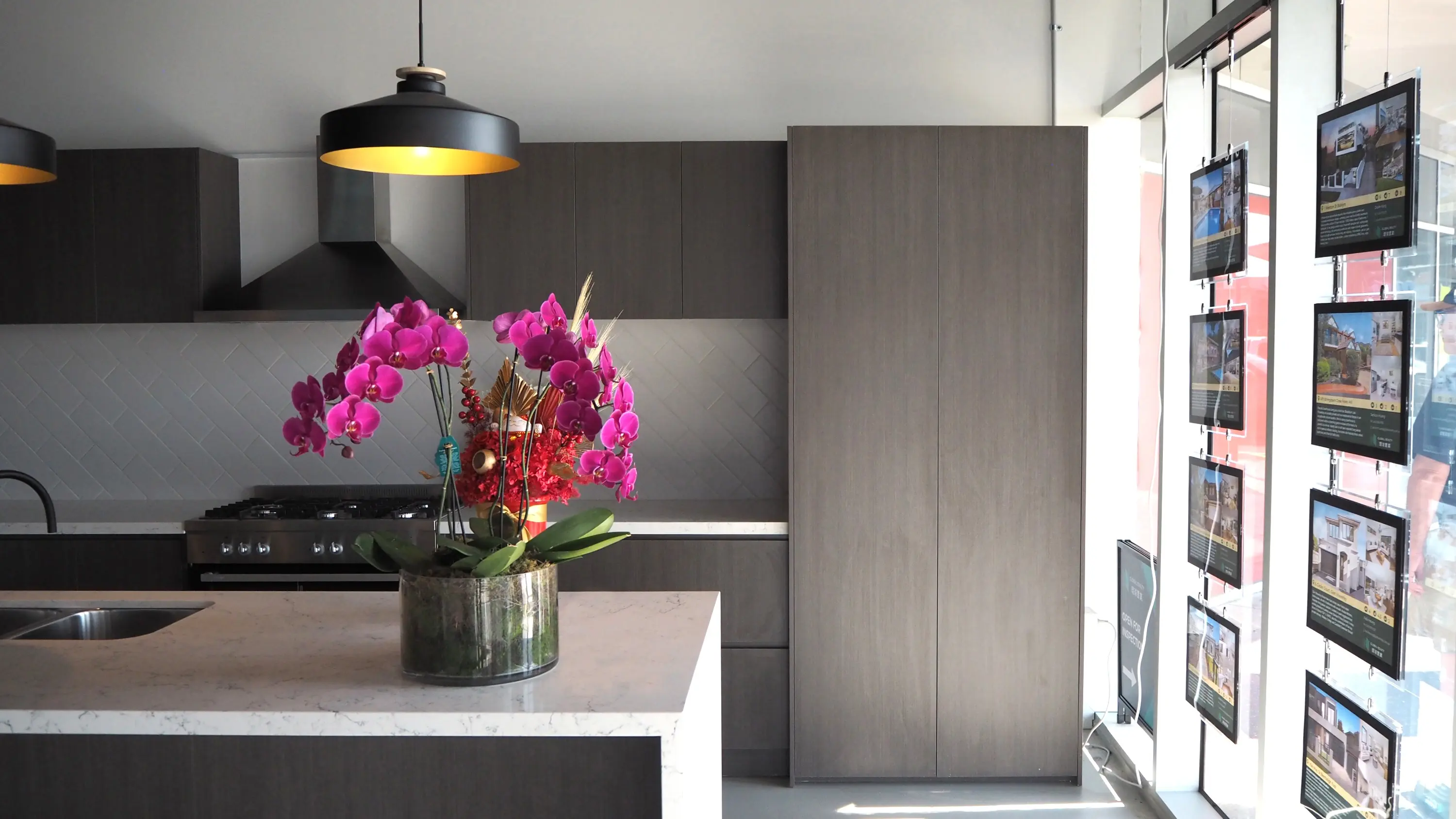 Global Realty’s Burwood One Flagship branch designed by Wang Architects unveils a dynamic commercial fit-out project that blends sophistication with versatility. The entrance and waiting area make a striking first impression, featuring a logo wall that encapsulates the brand identity. Moving beyond aesthetics, our design incorporates a private meeting room, a hub of confidentiality and collaboration, seamlessly transitioning into a well-optimised workstation area.