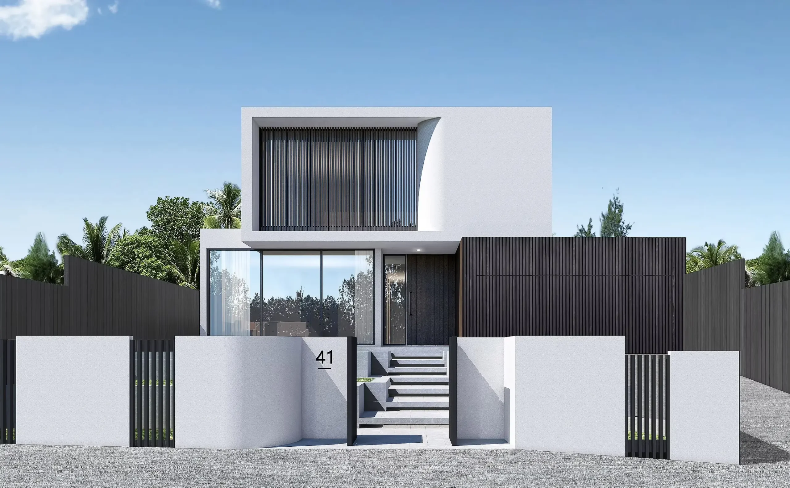 Designed to align with the orientation of the land, the northern side of the residence features an inner courtyard and a swimming pool, maximizing sunlight exposure throughout the building. The inclusion of curved bay windows serves as a focal point, adding uniqueness to the project. These protruding bay windows not only complement the design of the building’s facade but also partially shield the interior from excessive sunlight coming from the west.