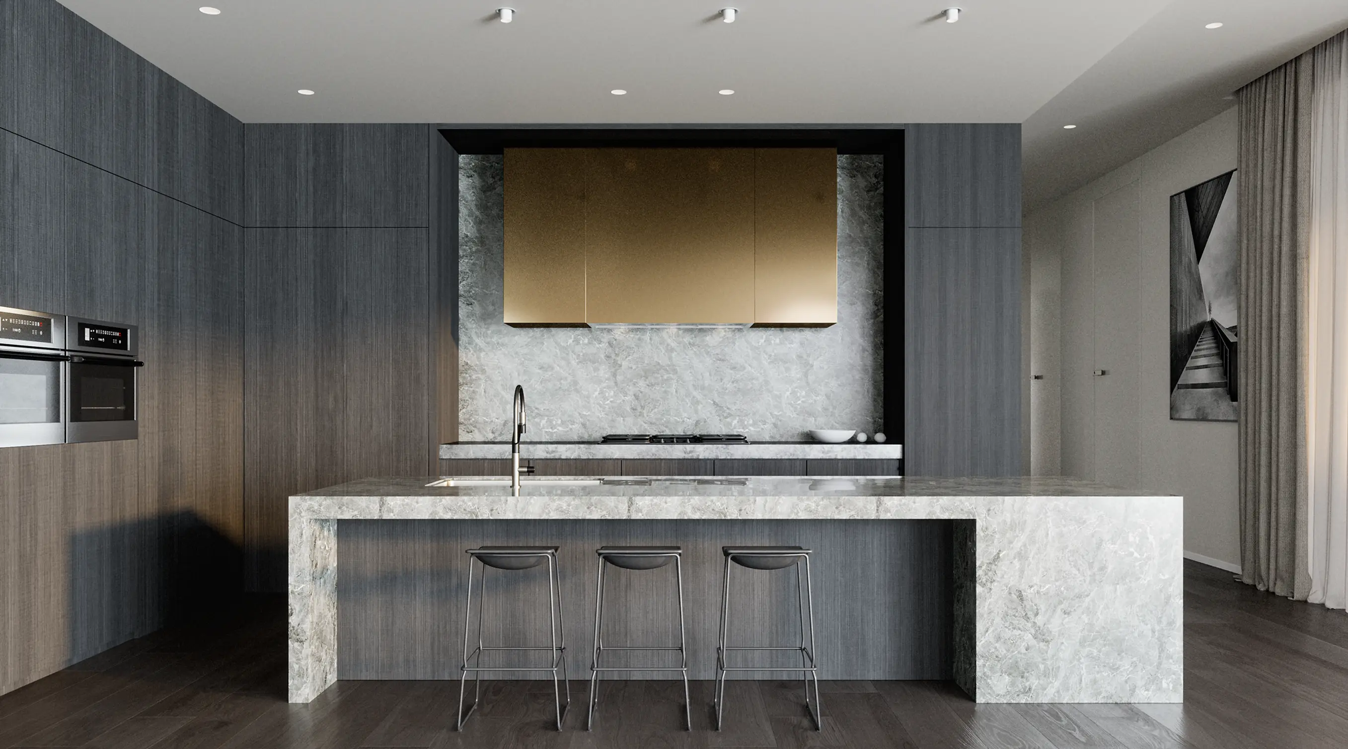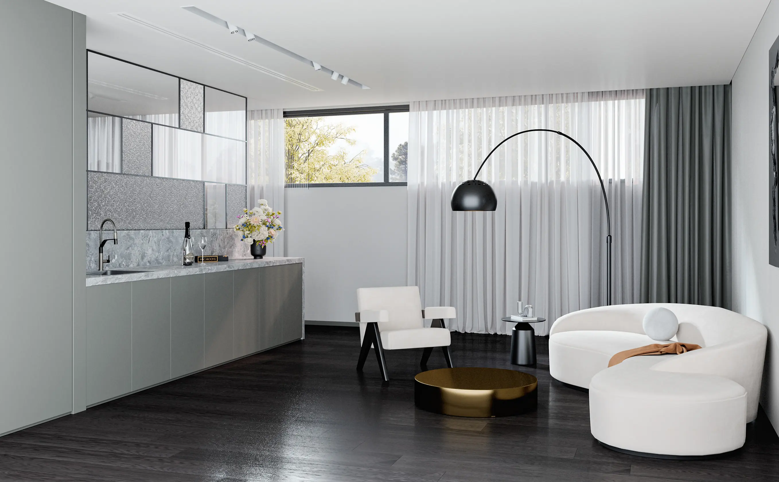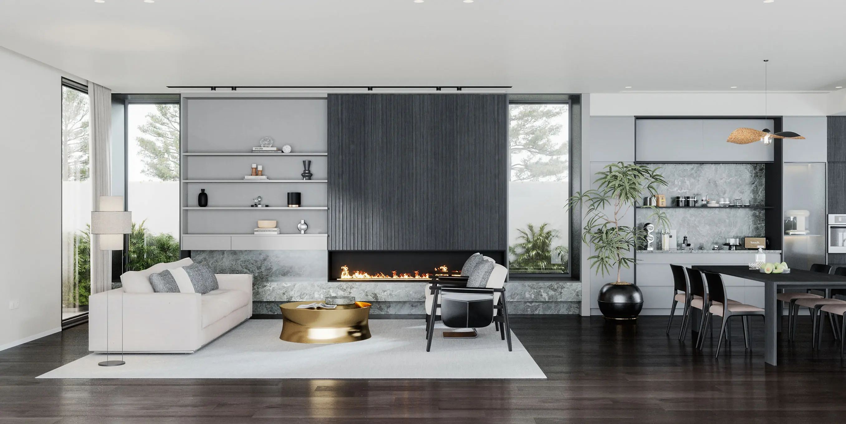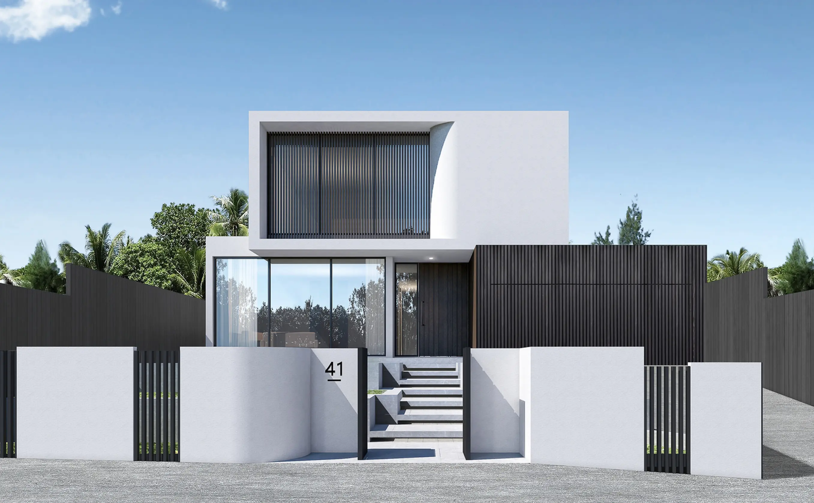 This modern-style residence in Glen Iris represents one of Wang Architects’ latest works. Embracing a design philosophy characterised by curved elements both in its floor plan and exterior, the house boasts a sophisticated black and white color scheme. Incorporating charred timber accents introduces a touch of natural elegance, enhancing the overall ambiance of the home.